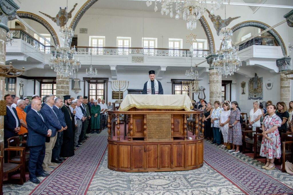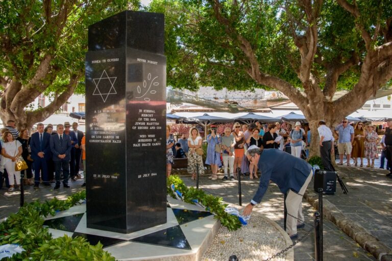 On 20.7.2025, took place the main event for this year’s Holocaust Memorial Day, at the Kal Shalom Synagogue, in the Medieval City of Rhodes, which included a memorial service by the Rabbi of Athens Gabriel Negrin, candle lighting, greetings, a keynote speech and the laying of wreaths at the Holocaust Memorial, in Jewish Martyrs Square.